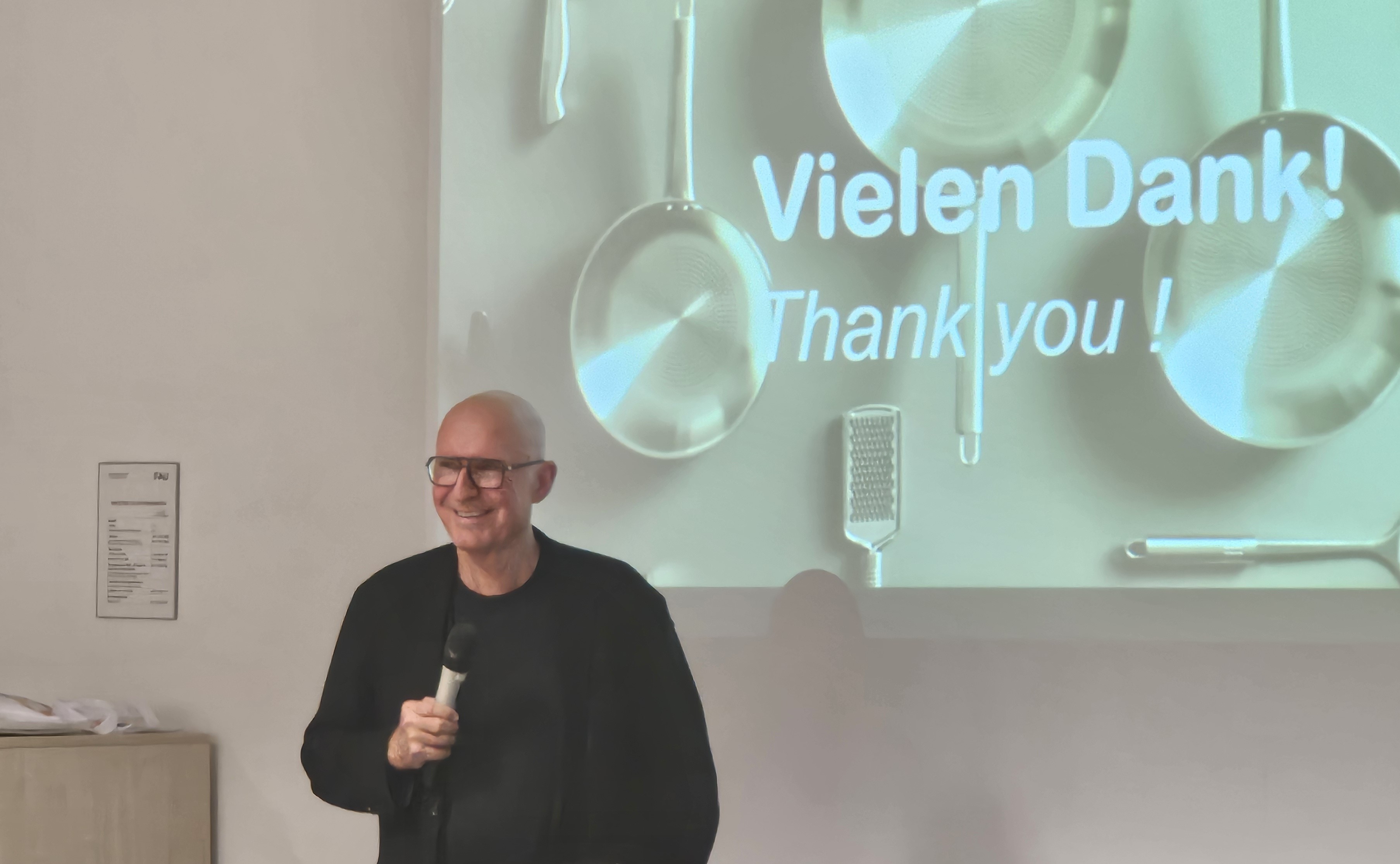 Unter dem Motto "Langfristig denken, innovativ handeln – Fackelmann als Mittelstand mit Perspektive" gewährte Herr Fackelmann spannende Einblicke in: